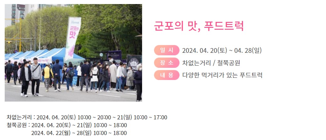* 더 자세한 내용은 군포철쭉축제 홈페이지에서 확인해 보시기 바랍니다.